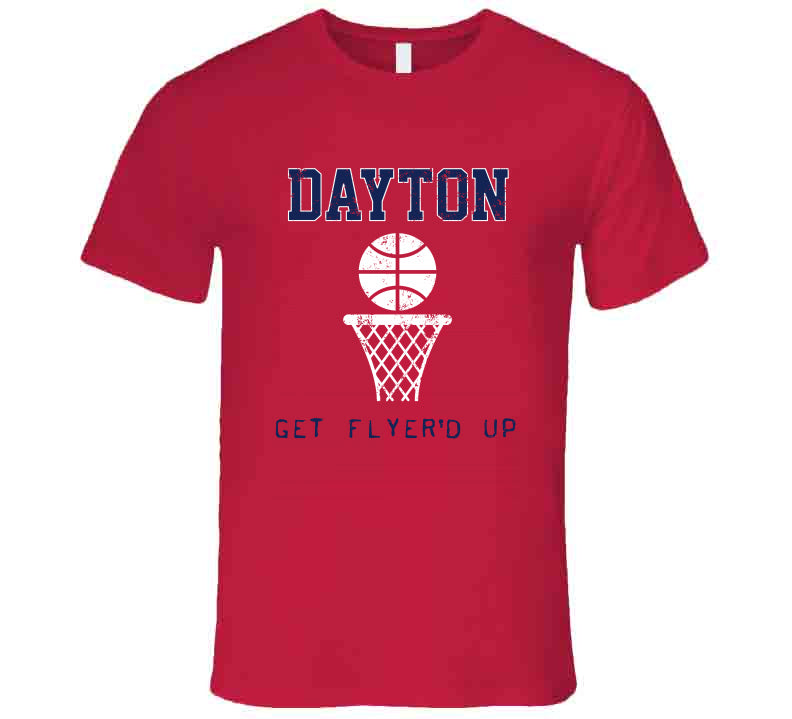 Get Flyer'd Up Dayton College Basketball Fan T Shirt is available on a Red 100% Cotton Tshirt. The Get Flyer'd Up Dayton College Basketball Fan T Shirt is available in all sizes. Please select your desired shirt style and size from the drop down above.